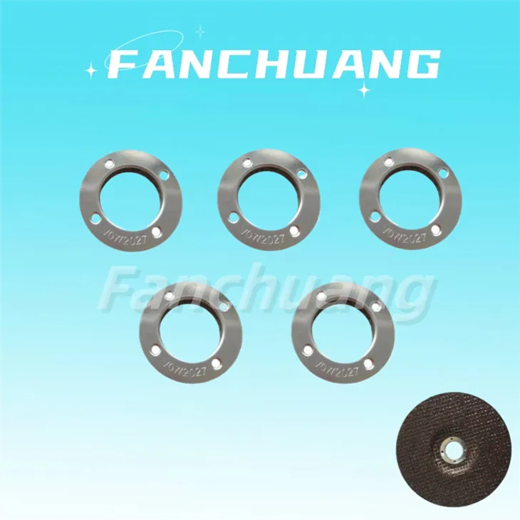 Les anneaux métalliques Fanchuang pour meule et meule de coupe en résine comportent un trou central, qui permet de monter la meule sur la broche de la meuleuse d'angle facilement et en toute sécurité.idéal pour toutes les meules de coupe et de meulage régulières, peut augmenter la force de serrage, minimiser les vibrations pendant le fonctionnement et augmenter la durée de vie de l'ensemble des disques de meulage et de coupe. Les chiffres sur les anneaux représentent la date d'expiration., rappelant aux clients d'utiliser ces anneaux métalliques pendant la période de validité. Le matériau des anneaux métalliques peut être du fer blanc, de l'acier galvanisé et de l'acier inoxydable. Voici les spécifications couramment utilisées.La forme, le diamètre et l'épaisseur spéciaux peuvent également être personnalisés.